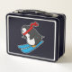 This is a standard metal lunchbox that appears to work just fine. We designed this box ourselves with an uploaded photo and custom text on the front and back. It looks absolutely beautiful except the front of the lunchbox is not centered like it shows in the photo. The print borders don't align with the inset flat part of the box where the preview photo online showed it perfectly centered in there. The back looks nice and centered though.