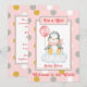 Celebrate the birth of your daughter with this cute Penguin baby girl announcement card. The card features a baby girl cartoon penguin holding a pink balloon and sitting on a cloud with a polka dot background of pink white and grey / grey. The card can be customise with your own announcement and personalised with your own baby details. The back of the card announces the birth or your daughter with her name , date of birth and weight, plus add you own names at the bottom. All texts can be amended to our own needs. Delete those you dont want. Oh and congratulations.