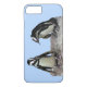 This fine art iPhone 11 case features adorable African Penguins standing on a rocky ledge against a sky blue background. Penguins are aquatic, flightless birds whose wings have become flippers. Each has a black stripe and black spots on the chest. The pattern of spots is unique for every bird, just like human fingerprints. They have pink glands above their eyes and pink and black feet.
