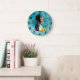 Wall Clock, 25.4 cm Round Black Wooden Frame