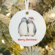 Indulge in the enchanting holiday spirit with our Christmas ornament, showcasing a delicate and beautiful watercolor illustration portraying an endearing pair of penguins sending warm Christmas wishes. Infuse your holiday season with joy and cuteness by embracing this adorable penguin family, bringing an endearing touch to your hearts and homes.