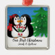 Our First Christmas Ornament features a cute penguin couple set on a snow filled blue background! Personalise with your information and date and you're all set to go! Wonderful dated keepsake gift for your first christmas and a great addition to you christmas ornament collection.