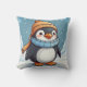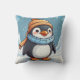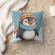 Penguin Cute Kawaii Brown Cap Print Cushion
