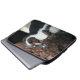 The sleeve is made of nice feeling material and seems very durable. I'm not sure how easy it'll be to clean, but the construction seems sound and the fabric is quick thick. I also like the double zipper. The printing is lovely and appears durable. The white on black contrast is nice, and the design very elegant.