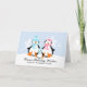 Customizable Christmas cards featuring a couple of owls perched on a branch and snowflakes on a blue background.
