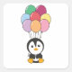 Penguin Flies Up With Colourful Balloons Square Sticker