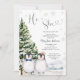 Penguin He or She Evergreen Winter Gender Reveal Invitation