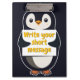 Penguin illustration holding customizable sign clipboard