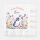 Penguin in Flowers Girl's Birthday Personalised Napkin