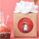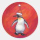 Penguin in Santa Hat on Red Classic Round Sticker