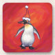 Penguin in Santa Hat on Red Coaster