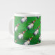 Penguin in Santa Hat Pattern on Green Large Coffee Mug