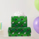 Penguin in Santa Hat Pattern on Green Wrapping Paper