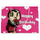 A cute penguin holding a rose with the word "Happy Birthday next to her. The background is pink with white hearts on it. This character design can also be found on birthday cards under my store. Thanks for stopping by!