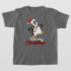 A cute, smiling baby penguin wearing a Santa hat is tangled up in Christmas lights. Merry Christmas!