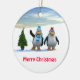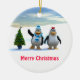 Here are two happy penguins who are all ready to celebrate the holidays with their decorated Christmas tree.
