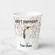 A cute illustration of a penguin partying and having fun! Penguin wearing a party hat and blowing party horn with confetti raining down on it. Let the celebrations begin! Perfect for anyone who loves funny animal illustrations. Ideal birthday party paper cups. Customise the occasion and name and make it your own.