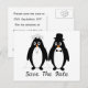 Wedding save the date postcard penguin design. Customise this wedding save the date with your wedding details. Should you require any help with customising then contact us through the link on this page. Penguin design personalised wedding save the date postcard