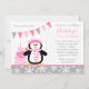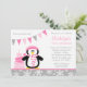 Penguin Snowflakes Pink Winter Onederland Birthday Invitation
