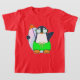 The t-shirt feels and looks great quality, a good thick cotton. It will be a little big for my son, but that means he will be able to wear it and not out grow it too soon. The print was as described on the order when personalised. True size, shape and colour T-shirt- thanks.