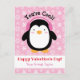 Cute penguin postcard, perfect for kids valentine's day card exchange.