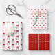 Penguins Valentines Wrapping Paper Sheets, Three 19 x 29 heavy weight wrapping paper, first sheet features two penguins with a heart of love above, a complementing 2ed sheet red heart design and 3rd sheet small white squares on a white background.