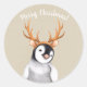 Penguin Wearing Reindeer Antlers Holiday Christmas Classic Round Sticker