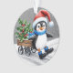 Penguin Wearing Santa hat Christmas Art acrylic round ornament.