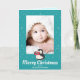 This cute penguin holiday card features an adorable penguin and a penguin party pattern on the inside, with a light turquoise background. Add your special photo to send out to your family and friends to wish them a Merry Christmas.