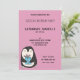 These party invites are perfect for throwing a birthday party for penguin fans. They also make great holiday party invites. They feature an illustration of a cute penguin holding a wrapped present against a pink background. The backs of these flat panel invites have ivory white pattern in on pink. Use the template fields to easily fill in your party details. There's lots of room to add additional information on these invites. To add more text fields just select the "customise" option.