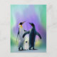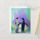 Penguins and baby in Aurora borealis Postcard