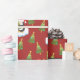 An Adorable Red Wrapping Paper For The Holidays Designed With Penguins And Christmas Trees