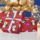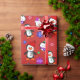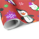 Adorable red, green, purple, blue snowflakes and penguins festive Holiday Christmas wrapping paper.