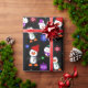 Adorable red, green, purple, light blue snowflakes and penguins festive Holiday Christmas wrapping paper.