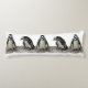 This body pillow features a repeating abstract pattern of adorable African Penguins standing on a rocky ledge. They are aquatic, flightless birds whose wings have become flippers. Each has a black stripe and black spots on the chest. The pattern of spots is unique for every penguin, just like human fingerprints. They have pink glands above their eyes and pink and black feet.