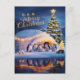 Penguins Celebrate in Igloo with Christmas Tree Postcard