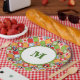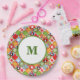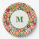 Penguins Christmas Monogram Paper Plates. Whimsical penguins, pretty circles pattern Holiday monogram plate.