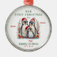 Penguins First Christmas Family of Three Metal Ornament . Cute Penguins Our First Christmas as a Family of Three Ornament for parents who just had their first child with mum, dad and baby penguin Our first Christmas as a family of three personalised keepsake ornament.