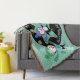 Penguins Holly Jolly Christmas holiday throw blanket features a beautiful design featuring a white dots on blue background, a black ring, blue star centre, snowflakes of white, three adorable penguins with sweaters, winter hats, ice skates, and scarves, and customisable white text that reads Have a Holly Jolly Christmas!