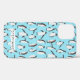 Penguins - collection of illustrated penguins with colouring of emperor and king penguins. Arranged in various poses and positions. Set on a bright spray blue background. Personalise with your name or initials on a white strip in black sans font lettering.