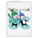 Two penguins ice skate on the frozen pond dressed in striped, colourful winter hats, scarves, and mittens and black text reads Skating is Cool on skating theme T-shirts, mugs, cards, bags, keepsakes, pillows, hoodies, stickers, and much more!