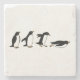 A drawing of a group of penguins in a row, with the first one going into a slide.