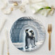 Two penguins slow dancing together on a glistening icy surface in front of a large igloo