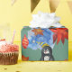 Cute christmas design with penguins, cookies and skies. Custom background colour.
