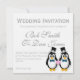 Cute wedding penguins graphic printed on a customizable wedding invitation, suitable for sending to all-day guests.