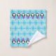 These adorable penguins are all in a row and each one wearing a purple hat. Forming a border on the top and bottom of this bath set, these wide eyed birds are overlayed on top of a light blue background with a darker blue, snow flake pattern. Great for a children's bathroom or any penguin lover.