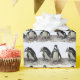 This wrapping paper features a repeating abstract pattern of adorable African Penguins standing on a rocky ledge. They are aquatic, flightless birds whose wings have become flippers. Each has a black stripe and black spots on the chest. The pattern of spots is unique for every penguin, just like human fingerprints. They have pink glands above their eyes and pink and black feet.