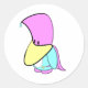 A pastel cartoon wizard penguin with a light blue and white body, lavender feet, light yellow beak, and tiny black eyes, wearing a stylish lavender cape and hood with a light blue raindrop-shaped jewel at the end, carrying a lavender and light yellow magic star wand.
