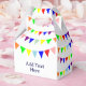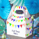 Decorative pennant banner. Custom white favour boxes. Edit text to customise. Party decor idea.
