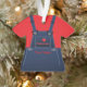 A graphic design of bib overalls by artist/designer Charmaine Paulson on a Pennsylvania Country Folk design Christmas Ornament. The ornament has text templates for your personalisation.